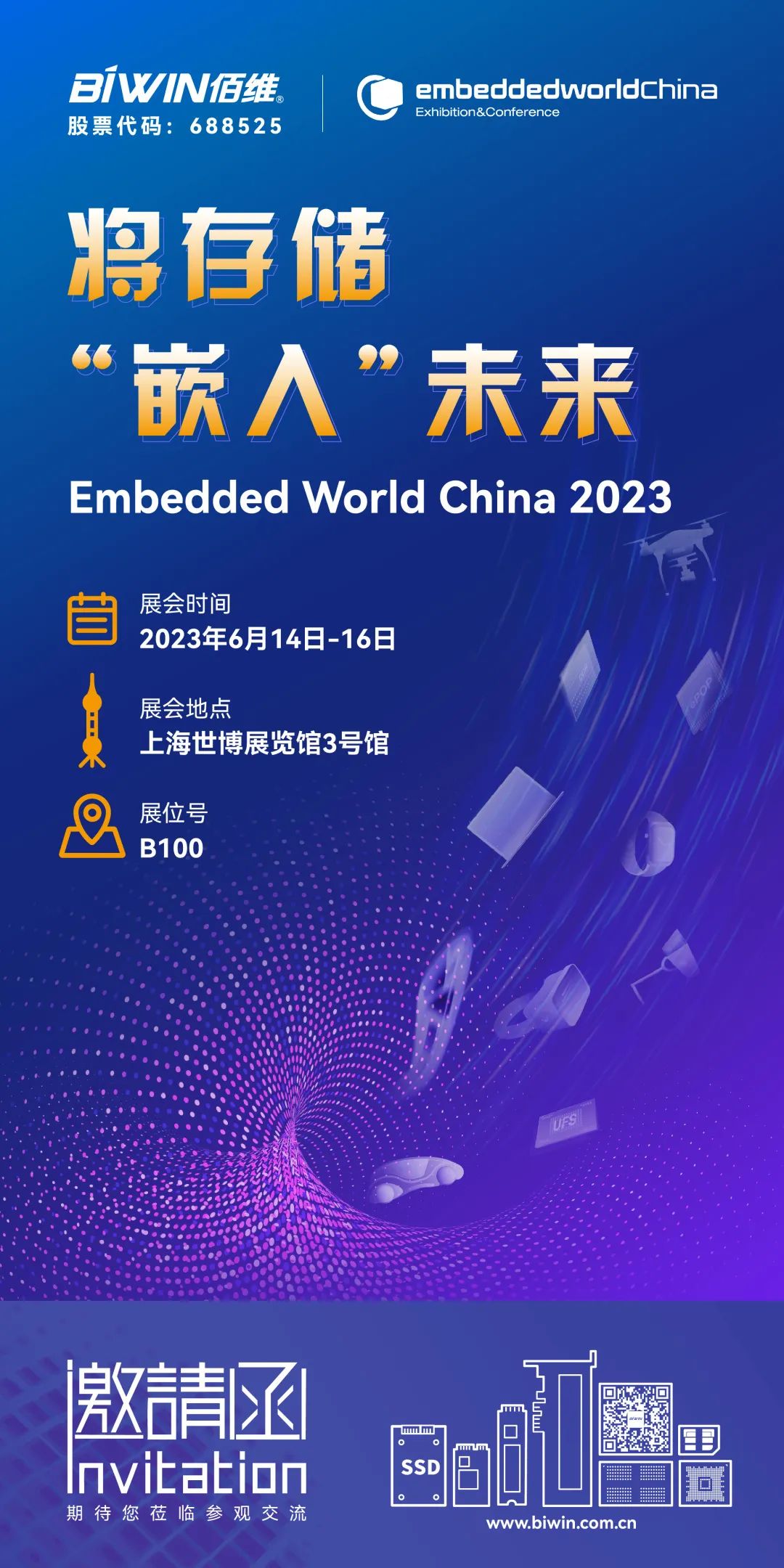 佰維將在會上展出圍繞重要應(yīng)用領(lǐng)域所推出的諸多嵌入式存儲產(chǎn)品及解決方案,誠邀全球客戶蒞臨參觀與交流。