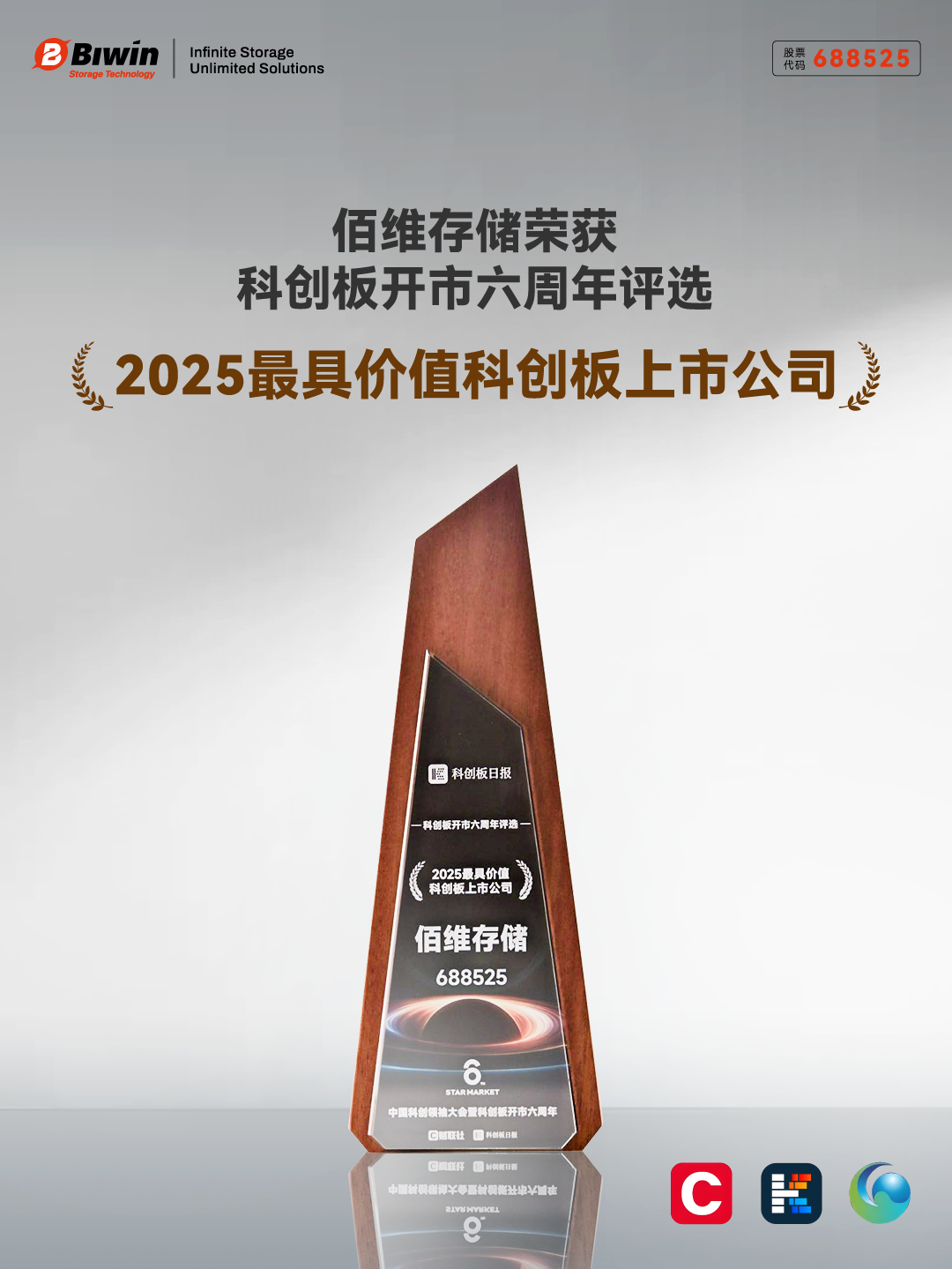 近日,由《科創(chuàng)板日報》、財聯(lián)社與上海長三角G60科創(chuàng)集團(tuán)聯(lián)合主辦的“2025中國科創(chuàng)領(lǐng)袖大會” 圓滿舉辦,同期重磅發(fā)布了“科創(chuàng)板六周年評選” 榜單,作為科創(chuàng)50成分股,佰維存儲(股票代碼:688525)再度入選“2025最具價值科創(chuàng)板上市公司”,標(biāo)志著資本市場對公司在技術(shù)創(chuàng)新、產(chǎn)業(yè)布局與長期價值創(chuàng)造上的持續(xù)認(rèn)可。