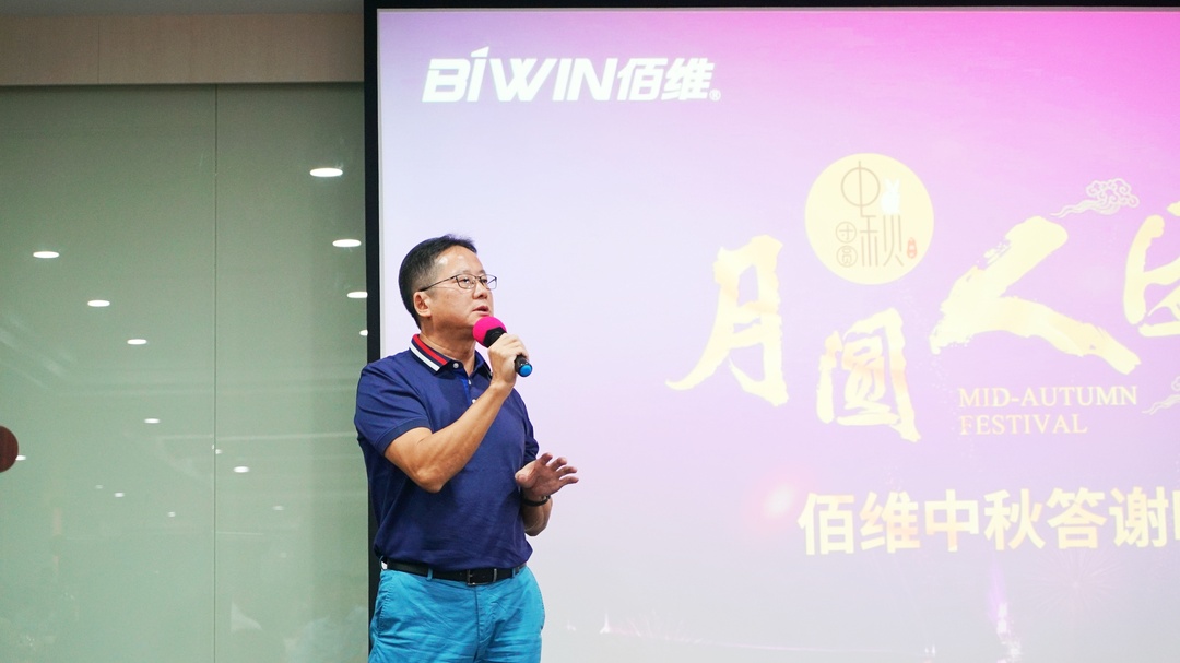 晚會(huì)現(xiàn)場(chǎng),佰維創(chuàng)始人孫日欣先生代表公司向全體佰維同仁和伙伴們致以中秋誠(chéng)摯的祝福,感恩大家多年以來(lái)對(duì)佰維的付出與支持。